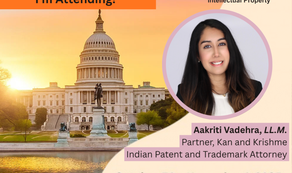 Kan and Krishme to Attend AIPLA 2025 Annual Meeting in Washington, D.C. Kan and Krishme is pleased to announce that Aakriti Vadehra, Partner, will represent the Firm at the AIPLA 2025 Annual Meeting, to be held in Washington, D.C. from October 30 to November 1, 2025, at the Gaylord National Resort and Convention Center. Hosted […]