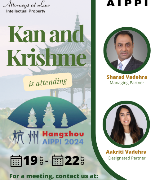 Kan & Krishme to Attend 2024 AIPPI World Congress in Hangzhou Kan and Krishme is proud to announce its participation in the 2024 AIPPI World Congress, scheduled to take place in Hangzhou, China, from October 19-22, 2024. Representing Kan and Krishme at the event will be Sharad Vadehra, Managing Partner, and Aakriti Vadehra, LL.M., Designated […]