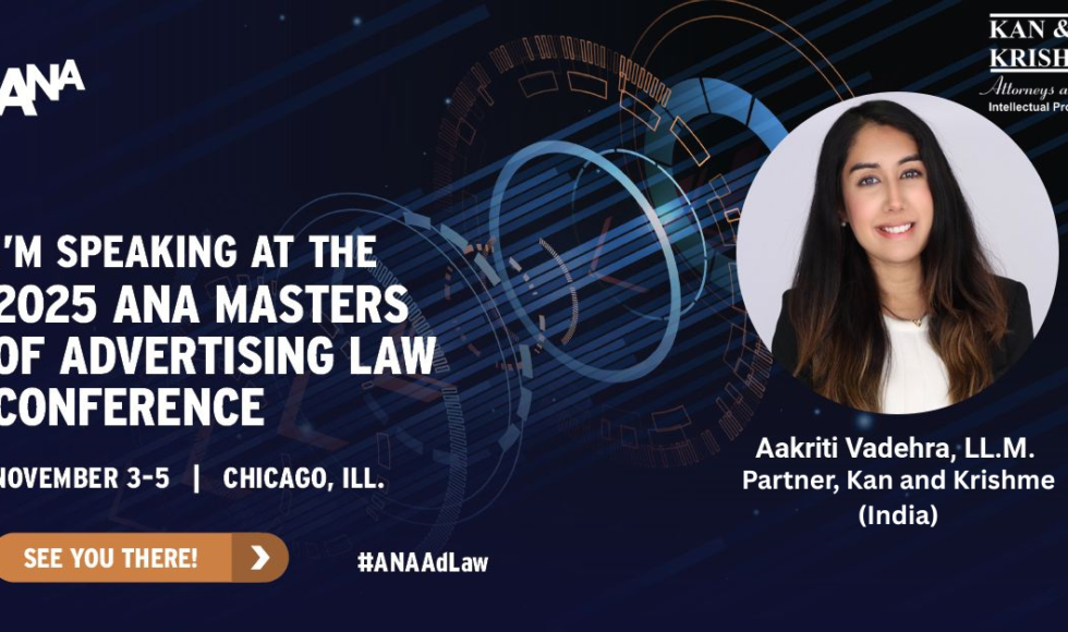 Kan and Krishme to Attend 2025 ANA Advertising Law Conference in Chicago Kan and Krishme is proud to announce that Aakriti Vadehra, Partner, shall be attending the 2025 ANA Advertising Law Conference in Chicago from November 3-5, 2025. While there, she shall also be speaking at the panel “Preparing for the World Cup” which will […]