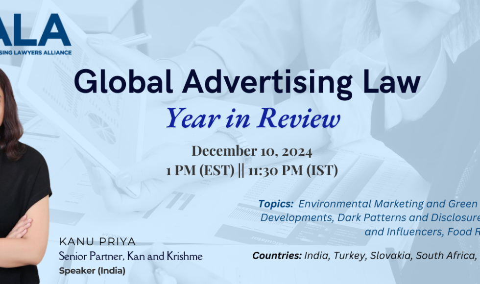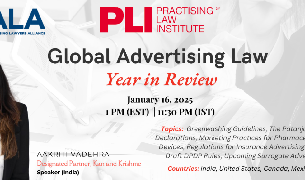 Kan and Krishme Announces Participation in Prestigious Webinar on Global Advertising Law: Year in Review Kan and Krishme is proud to announce that Ms. Aakriti Vadehra, Designated Partner at the firm, will be speaking at the much-anticipated Global Advertising Law: Year in Review webinar, hosted by the Practising Law Institute (PLI). Scheduled for January 16, […]