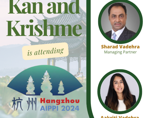 Kan & Krishme to Attend 2024 AIPPI World Congress in Hangzhou Kan and Krishme is proud to announce its participation in the 2024 AIPPI World Congress, scheduled to take place in Hangzhou, China, from October 19-22, 2024. Representing Kan and Krishme at the event will be Sharad Vadehra, Managing Partner, and Aakriti Vadehra, LL.M., Designated […]