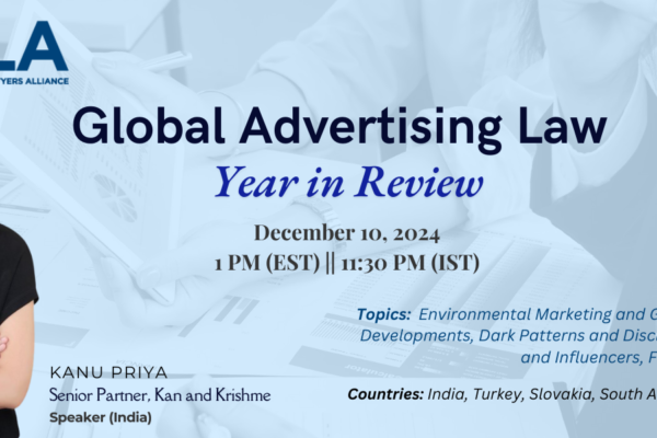 Kan and Krishme Announces Kanu Priya’s Participation in GALA’s Global Advertising Law: Year in Review Webinar Kan & Krishme is proud to announce that Kanu Priya, Senior Partner at the firm, will be speaking at the Global Advertising Law: Year in Review webinar, hosted by the Global Advertising Lawyers Alliance (GALA). The webinar is scheduled […]