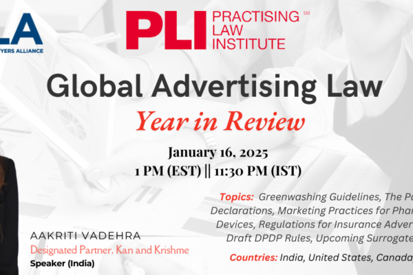 Kan and Krishme Announces Participation in Prestigious Webinar on Global Advertising Law: Year in Review Kan and Krishme is proud to announce that Ms. Aakriti Vadehra, Designated Partner at the firm, will be speaking at the much-anticipated Global Advertising Law: Year in Review webinar, hosted by the Practising Law Institute (PLI). Scheduled for January 16, […]