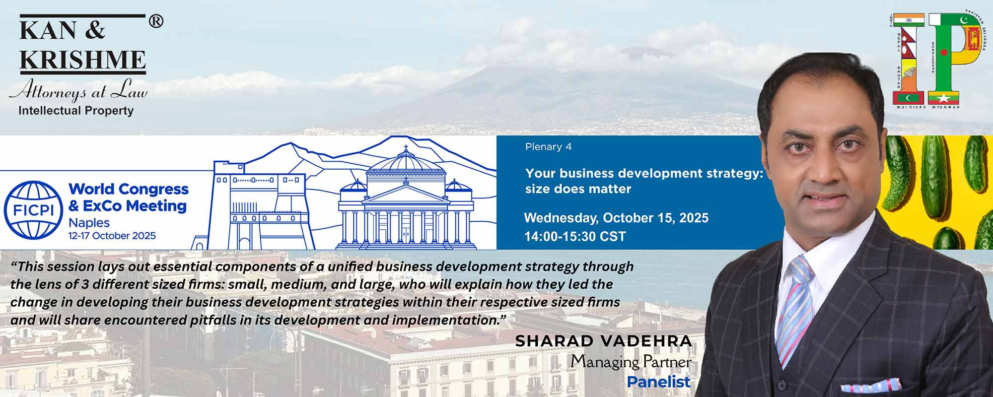 Kan and Krishme is proud to announce that its Managing Partner, Sharad Vadehra, has been invited as a panelist at the upcoming FICPI World Congress & ExCo Meeting in Naples, Italy, taking place from 12–17 October 2025.
